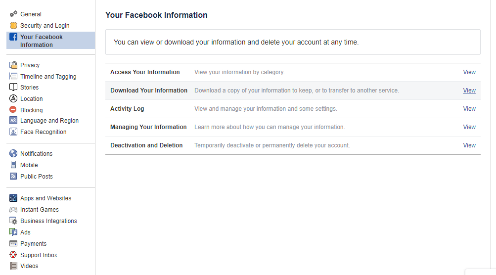 - Then, go to “Your Facebook Information” in the left sidebar