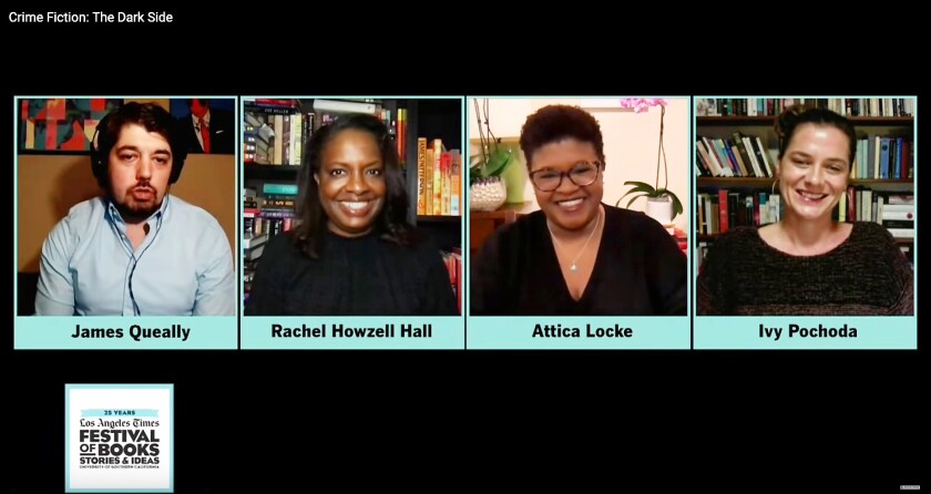 Hall and Queally were joined by other L.A.-based crime fiction writers Attica Locke and Ivy Pochoda for a wide-ranging conversation about character voice, avoiding tropes, what they’re reading, the writing process — before and during a pandemic — and more. For Locke, the answer to Queally’s question was simple: “This isn’t on us to fix. Yes, it matters what we’re putting in these books, but I want all of that attention to be focused on the police and the people who can actually enact real change. I feel like it’s a little navel gazing to suggest that what we’re putting in these books can really shift what’s happening to real people at the hands of police.”