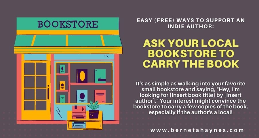 It’s as easy as walking into your favorite small bookstore and saying, “Hey, I’m looking for [insert book title] by [insert author].” Your interest might convince the bookstore to carry a few copies of the book, especially if the author is local.