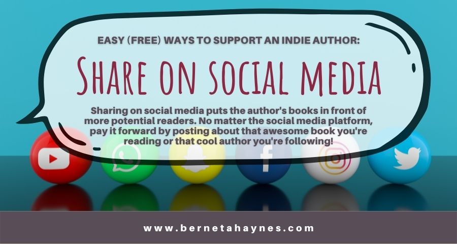 Sharing on social media puts the author’s books in front of more potential readers. No matter the social media platform, pay it forward by posting about that awesome book you’re reading or that cool author you’re following!