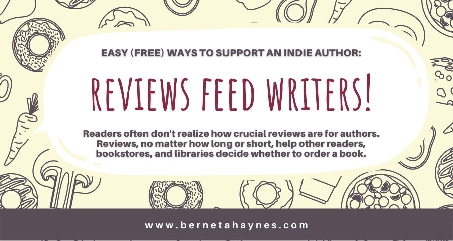 Reviews are like water for authors…absolutely vital. Reviews, no matter how long or short, help other readers, bookstores, and libraries decide whether to order a book. By leaving a review (even one sentence) on Amazon, Goodreads, Barnes & Noble, Bookbub, or elsewhere online, you’re helping an author more than you can imagine.