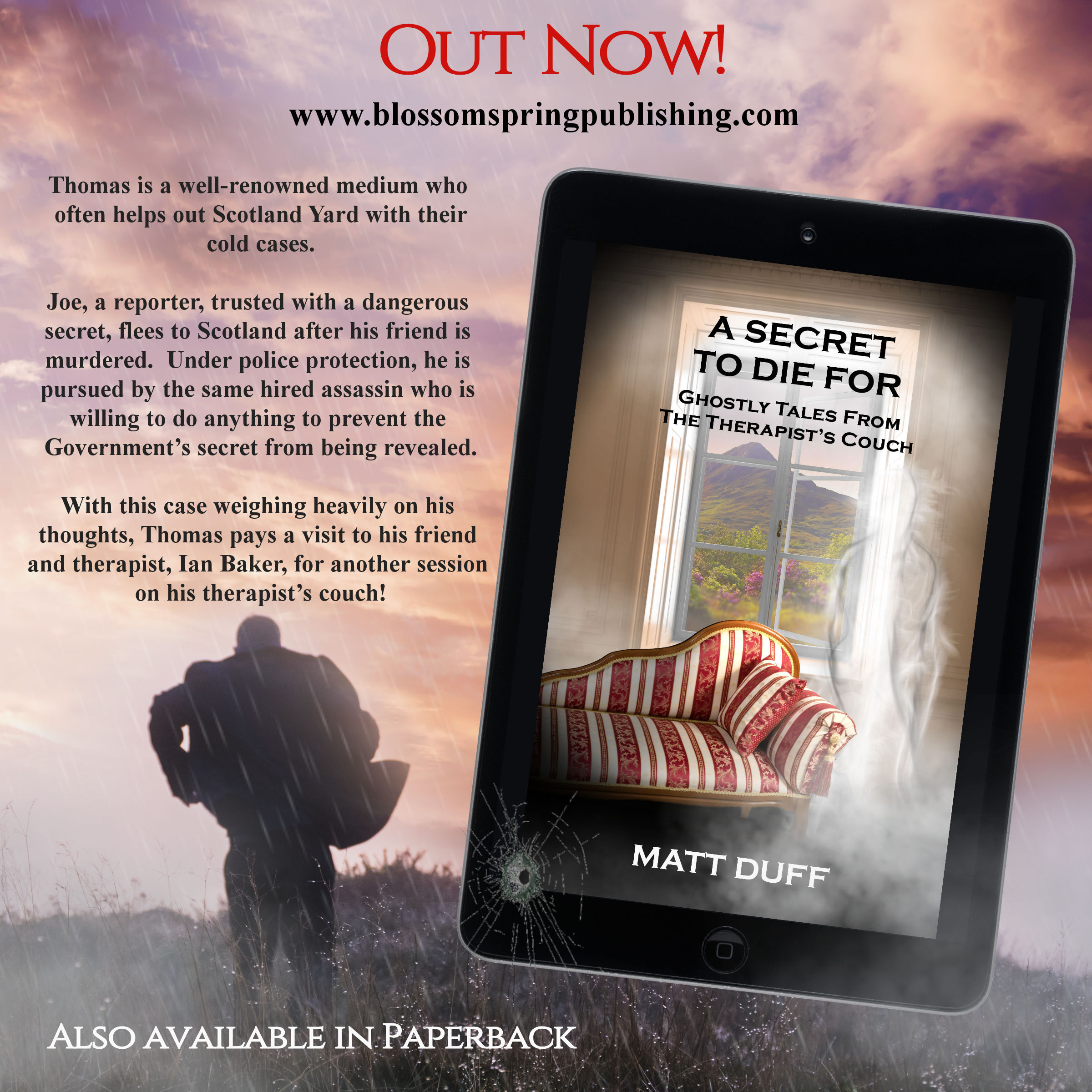 The book I have just had published, A Secret to Die For, is the first in a series of some forty stories entitled Ghostly Tales from the Therapists Couch.